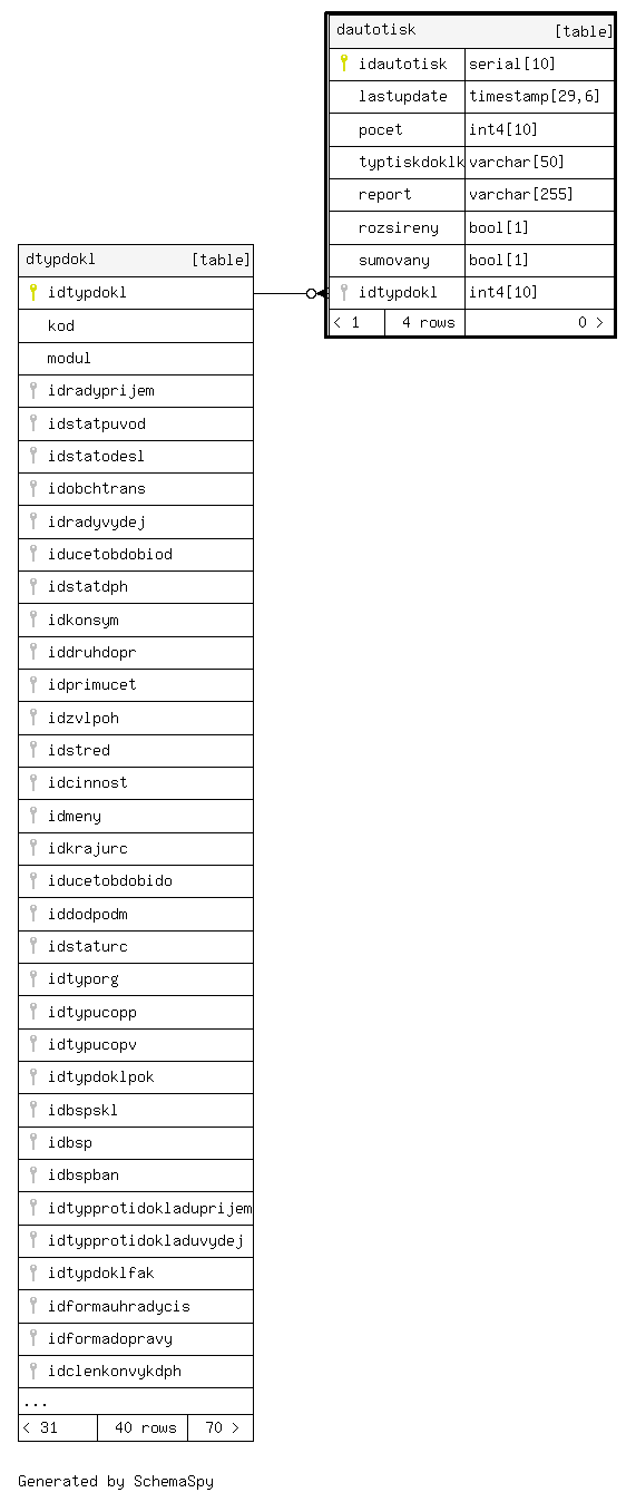 | dautotisk_pkey | Primary key | Asc | idautotisk |