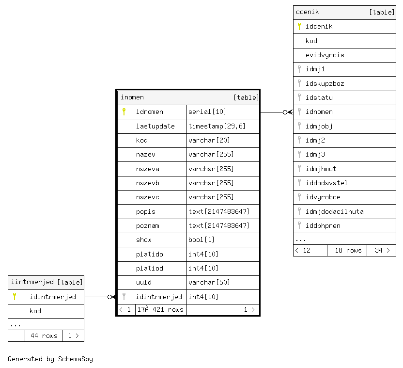 | inomen_kod_key | Must be unique | Asc | kod |