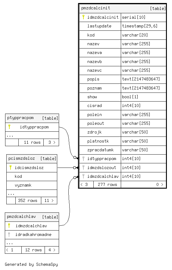 | idmzdcalcinit | serial | 10 | √ | nextval('seq_pmzdcalcinit'::regclass) |