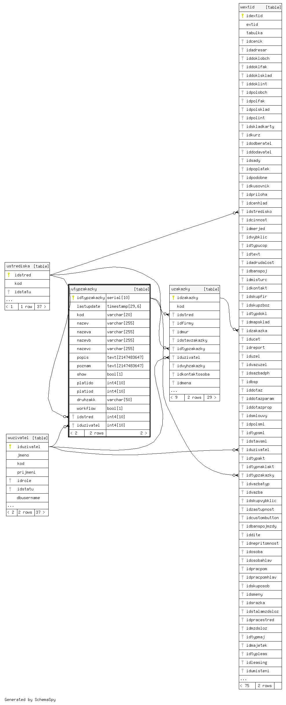 | idtypzakazky | serial | 10 | √ | nextval('seq_utypzakazky'::regclass) |