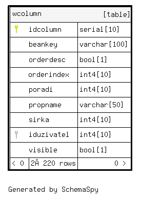 | wcolumn_beankey_key | Must be unique | Asc/Asc/Asc | beankey + propname + iduzivatel |