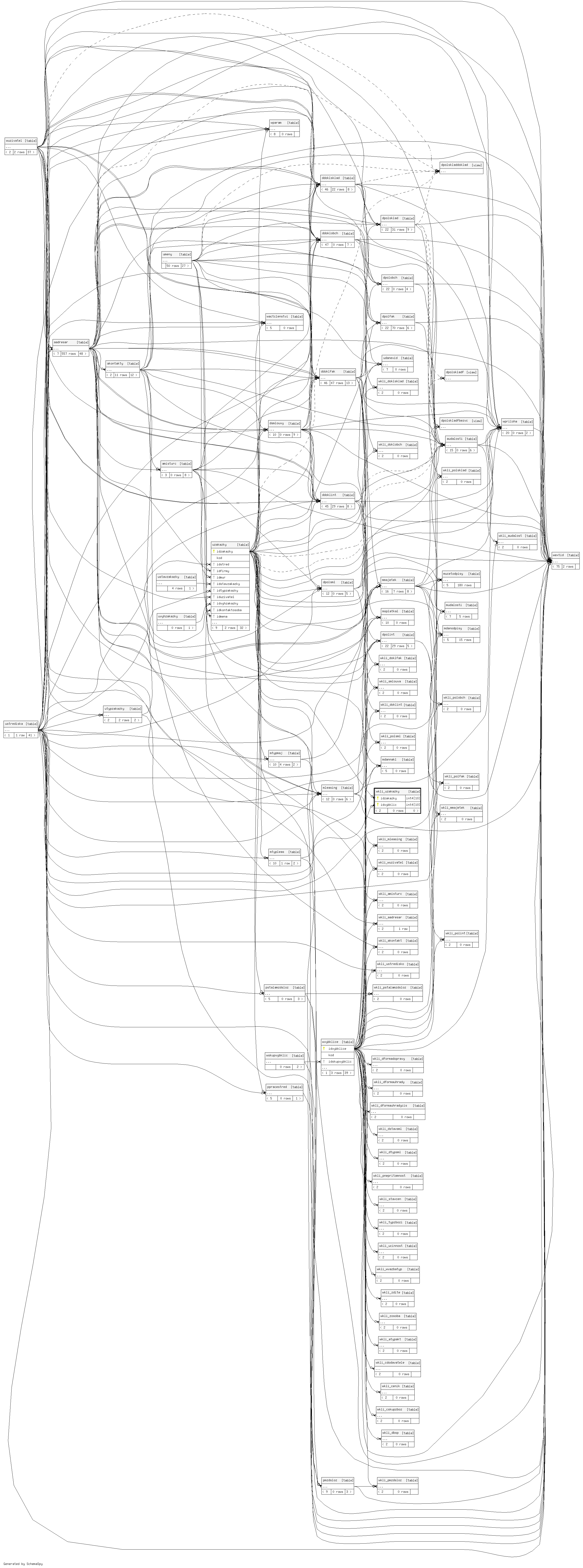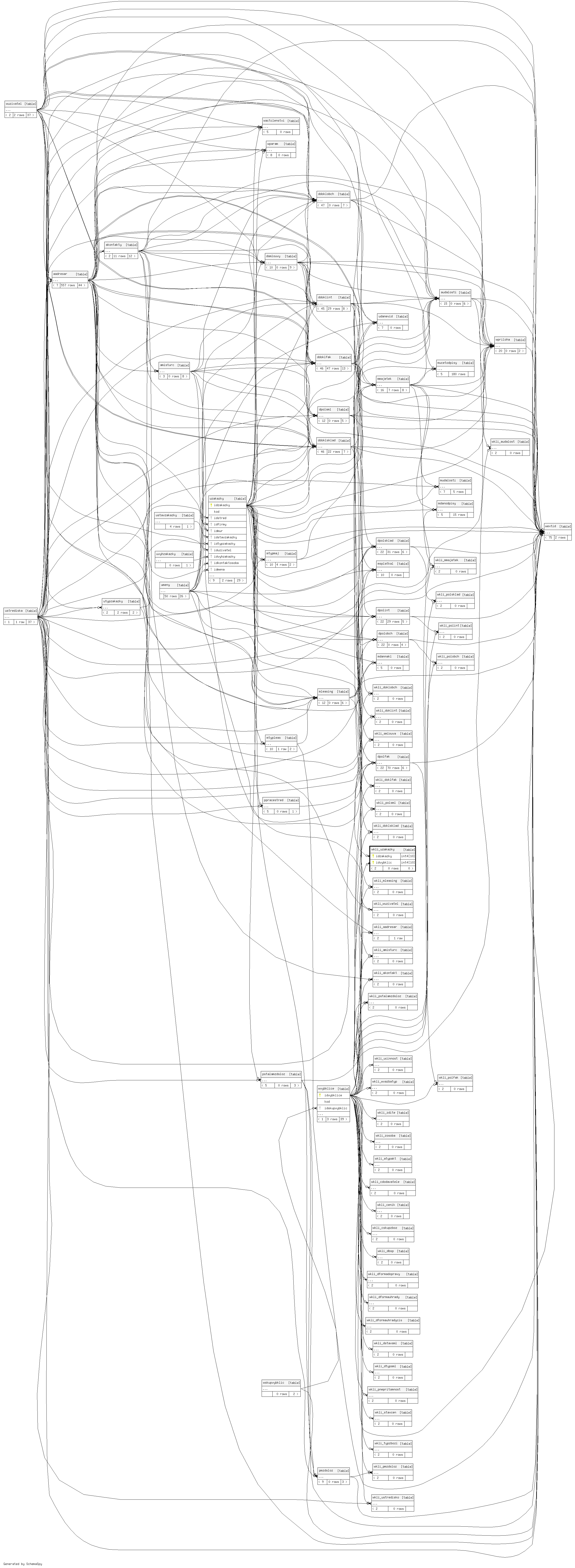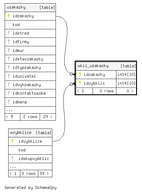 | wkli_uzakazky_pkey | Primary key | Asc/Asc | idzakazky + idvybklic |