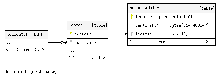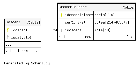 | woscertcipher_pkey | Primary key | Asc | idoscertcipher |